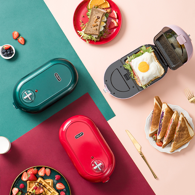 KOLFT Timed Thermoregulation Sandwich Breakfast Machine Home Light Eclipse Waffle Bread Multifunction Toast Press Baking Machine