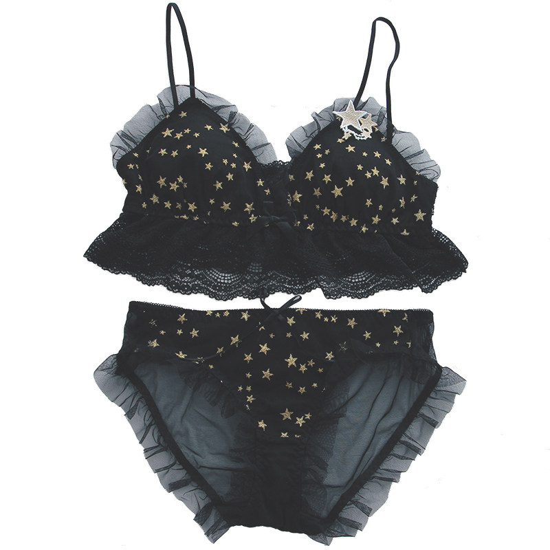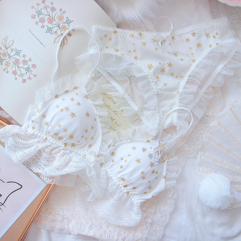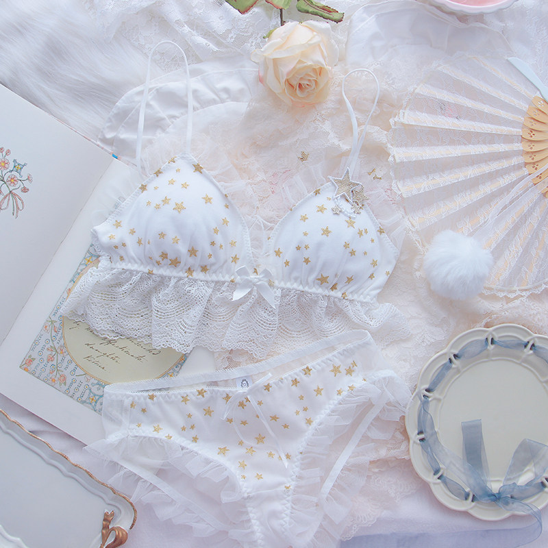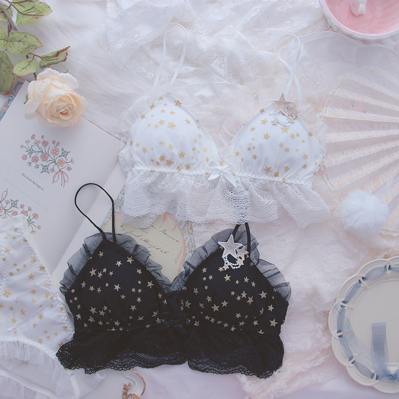 Star Sleepless Nights Lace Young Girl Hearts Underwear Cute Sweet students Soft Sister StarAir Little Night Clover No steel ring bra