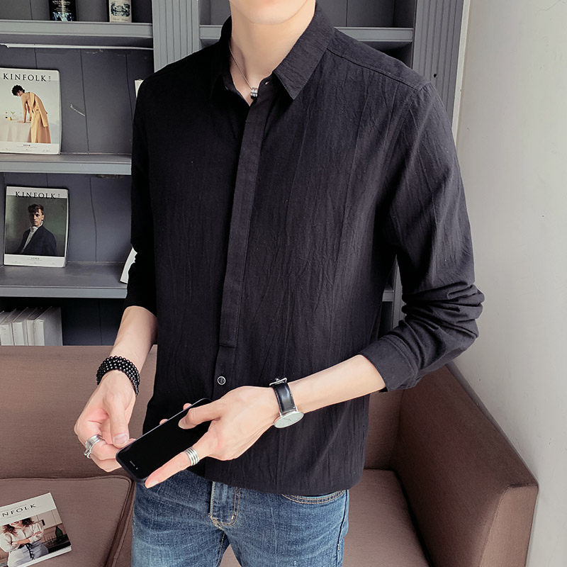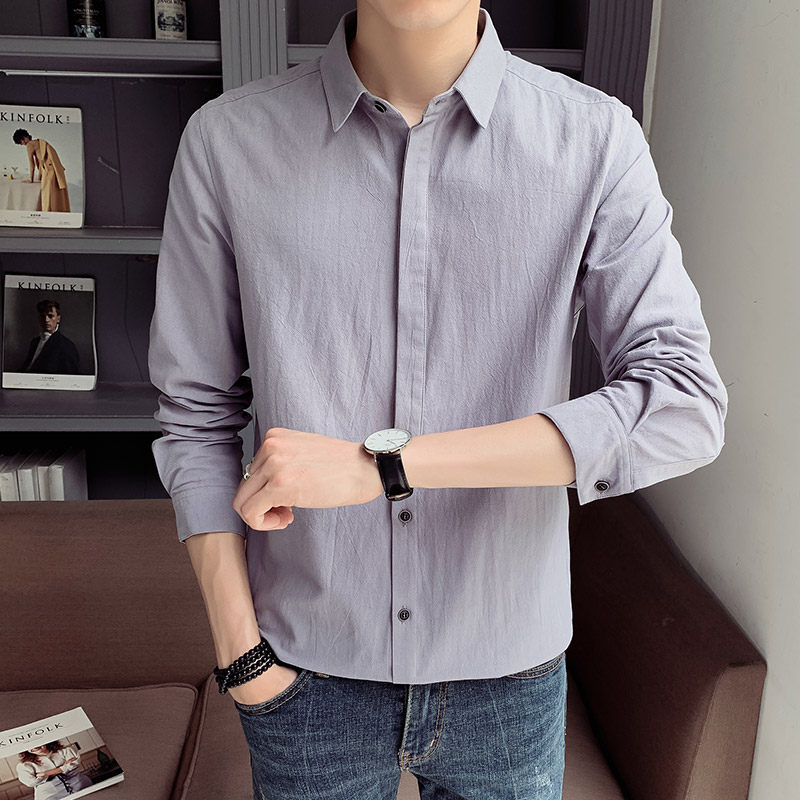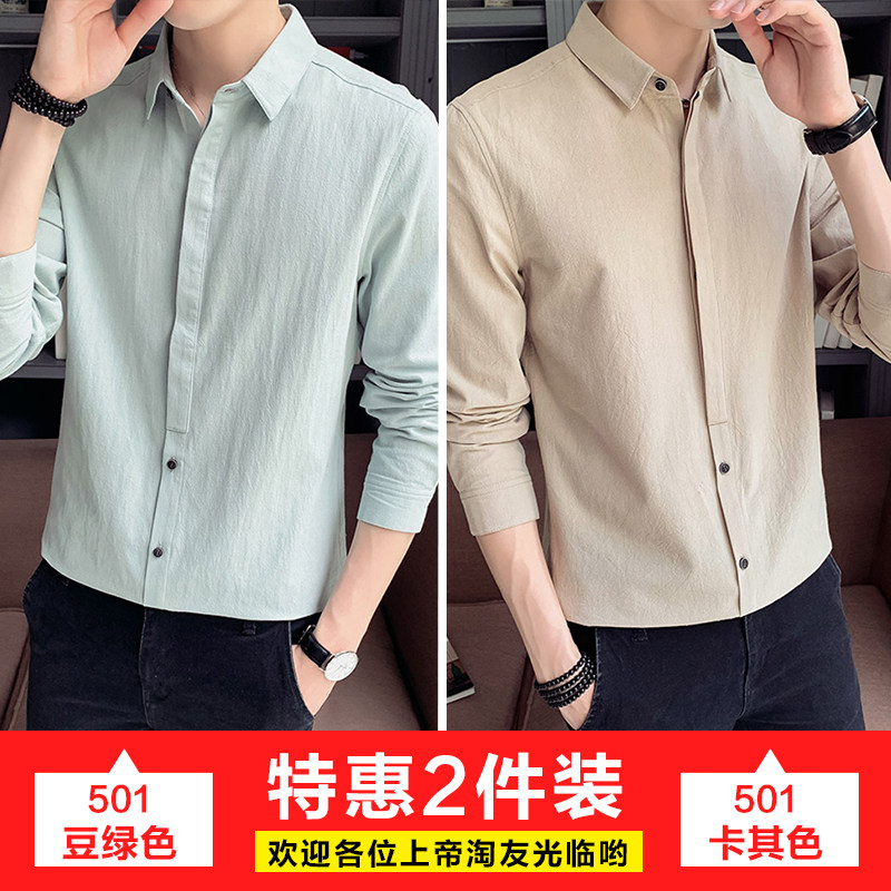 Autumn shirt male long sleeve 2022 new spring and autumn casual shirt Hui - Han Edition trendy handsome men's coat