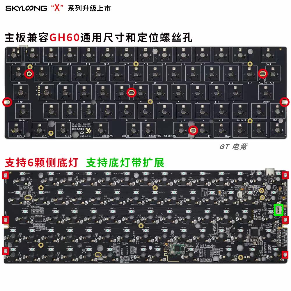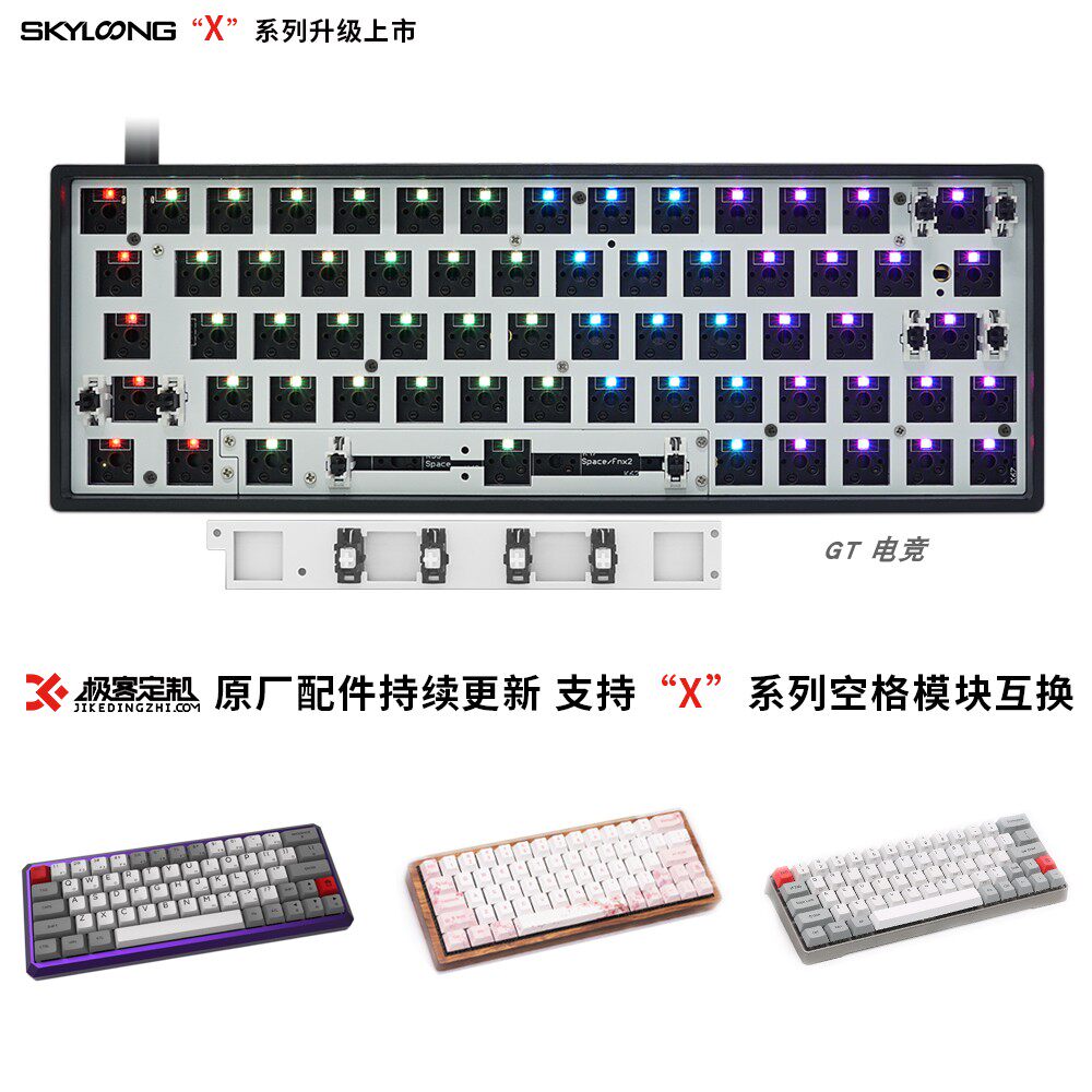Geeks Customized GK64XSPCB dual-mode mechanical keyboard kit hot-swappable Bluetooth wireless RGB customised GH60