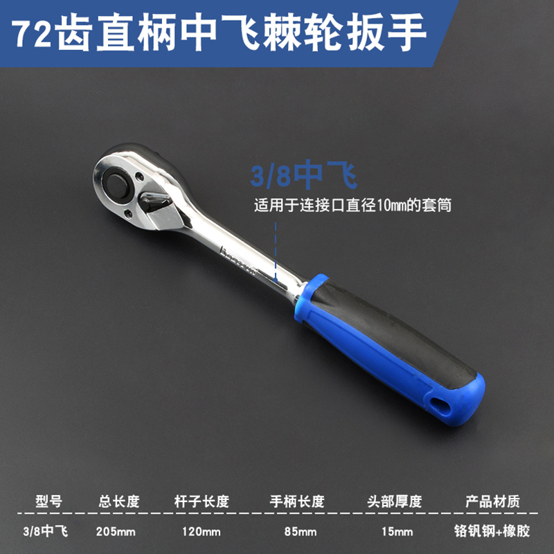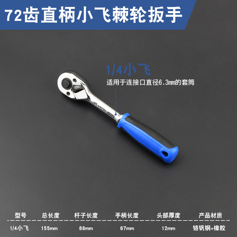 Fast ratchet wrench supporting barrel 72 teeth two-way big fly mid-fly small fly spinner S chrome vanadium auto repair repair tool