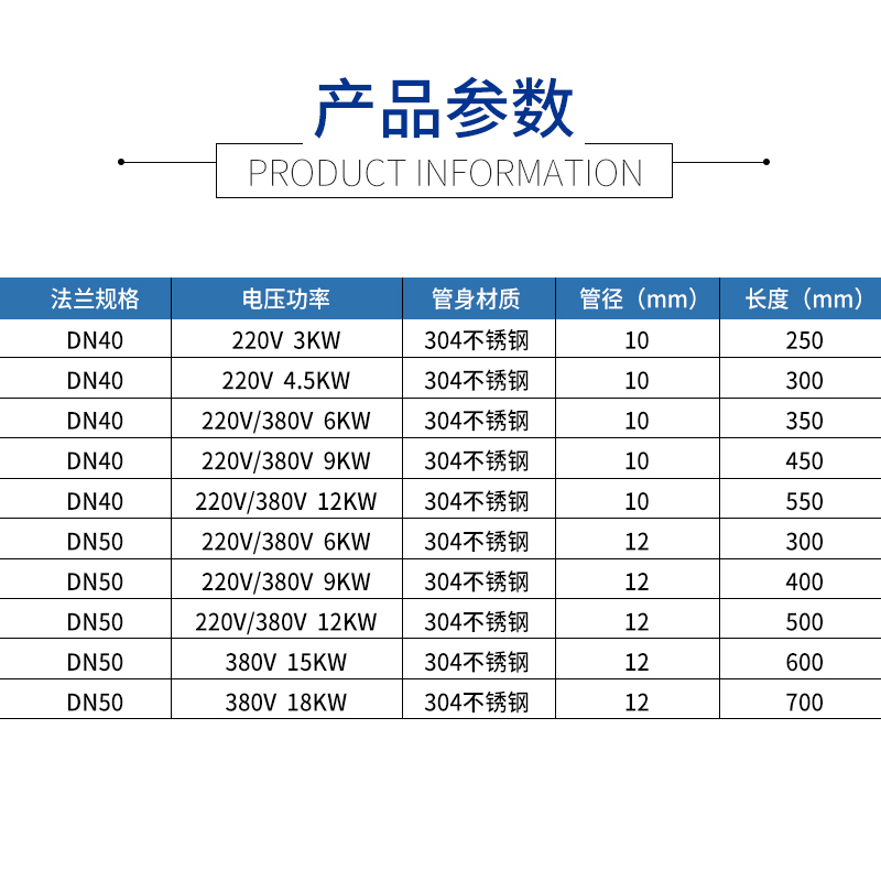 Stainless steel heating tube DN40 DN50 water tank boiler high power 220 380V industrial electric heating tube heating rod
