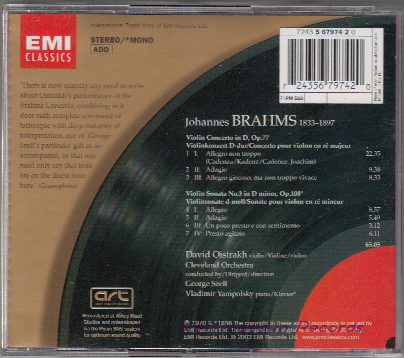 Yampolsky Oistrach Brahms Violin Concerto Violin Sonata
