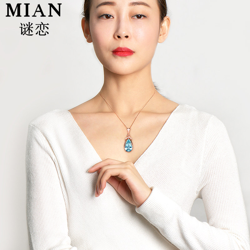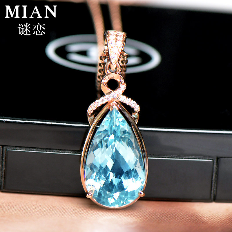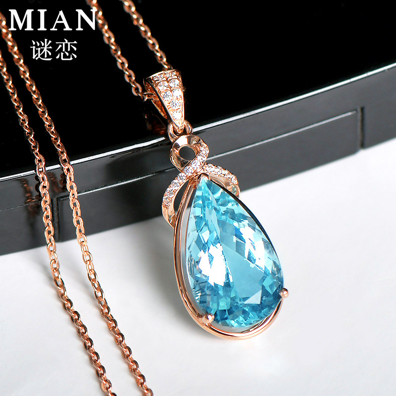 Mystery Love Natural Aquamarine Pendant Female 18K Gold Aquamarine Necklace Birthday Gift Gemstone Customization