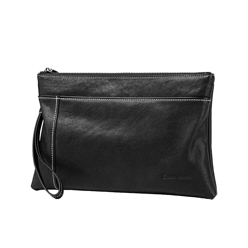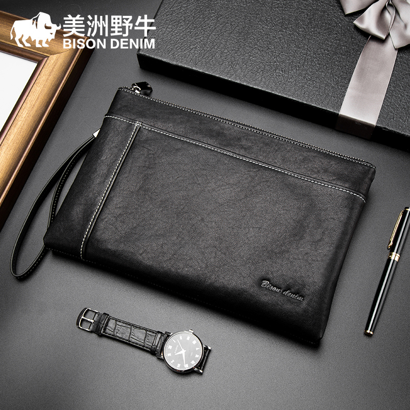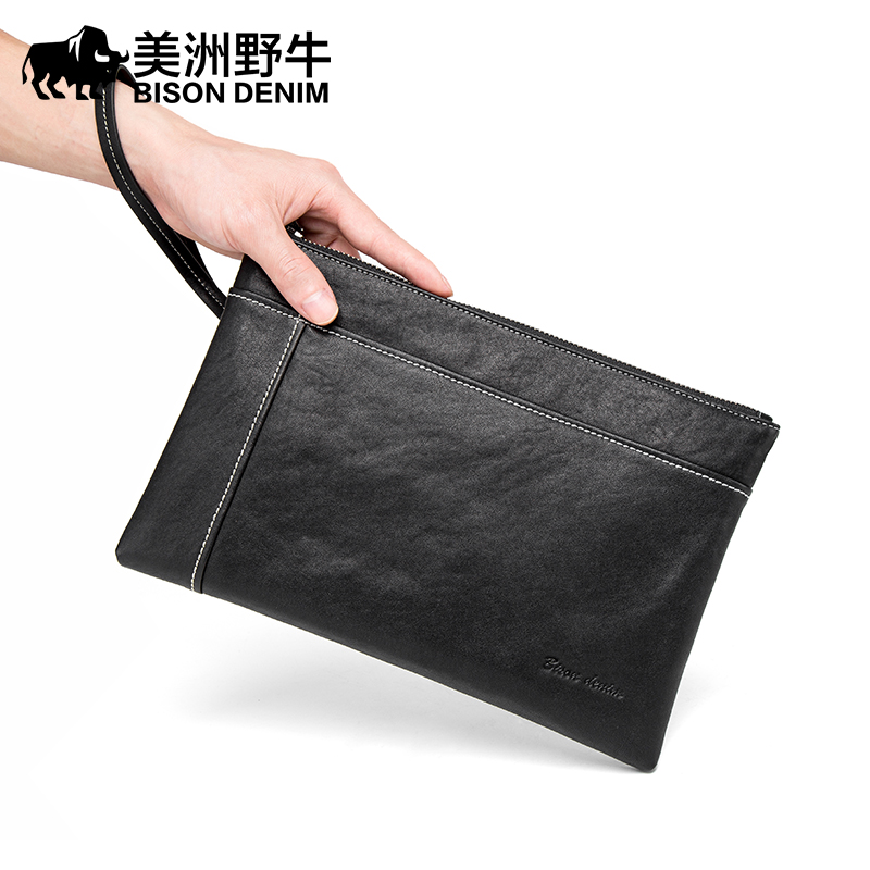 American bison handbag men's leather envelope bag wallet top layer vegetable tanned cowhide soft leather large-capacity clutch bag tide
