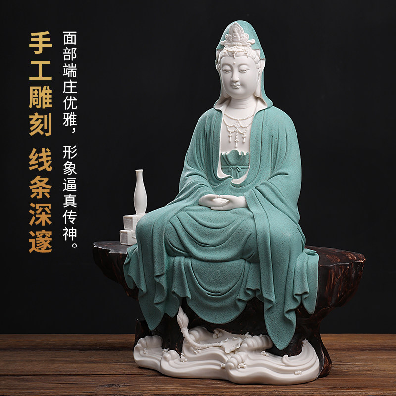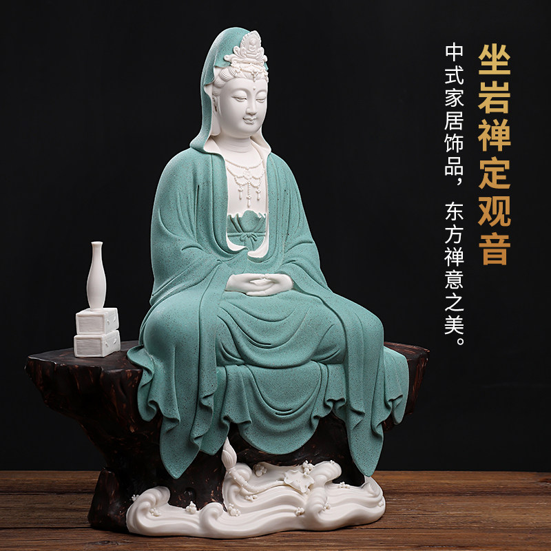 Oriental clay "Sitting Rock Meditation Guanyin" Living room ceramic ornaments Dehua white porcelain Buddha statue sculpture handicrafts