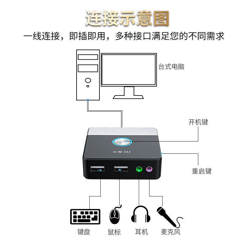 Internet Cafe Computer Desk Face Switch Home Host Shell Power Button With Dual USB Audio Start Mobile Extension Cord