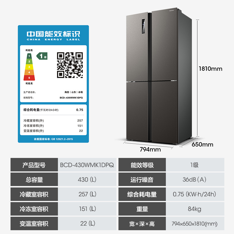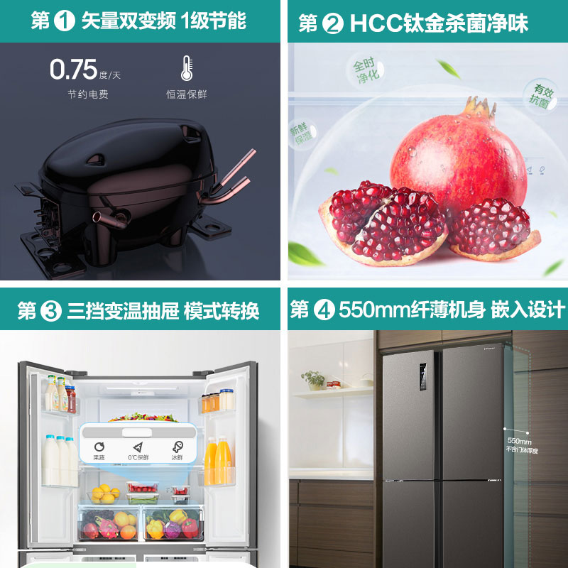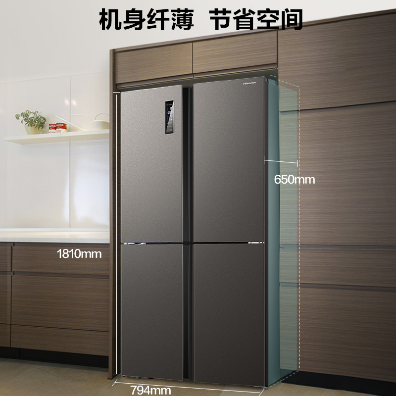 (Obsidian) Hisense 430-liter cross double-door refrigerator household ultra-thin embedded frequency conversion air-cooled first-class energy saving