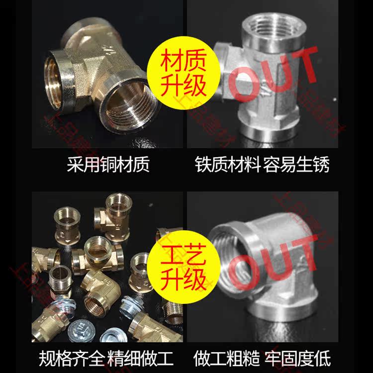 4 points outer wire direct 20 copper outer Luo outer wire inner wire copper tee all copper series accessories butt inlet connector