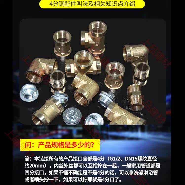 4 points copper external screw (1 2 double male screws) 4 points copper elbow (1 2 inner wire) 4 points copper direct (1 2 inner wire) 4 points copper tee (1 2 inner wire) 4 points galvanized wire plug (1 2