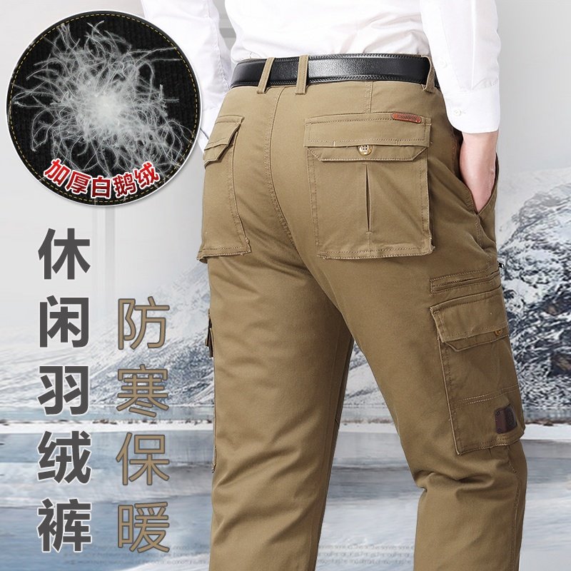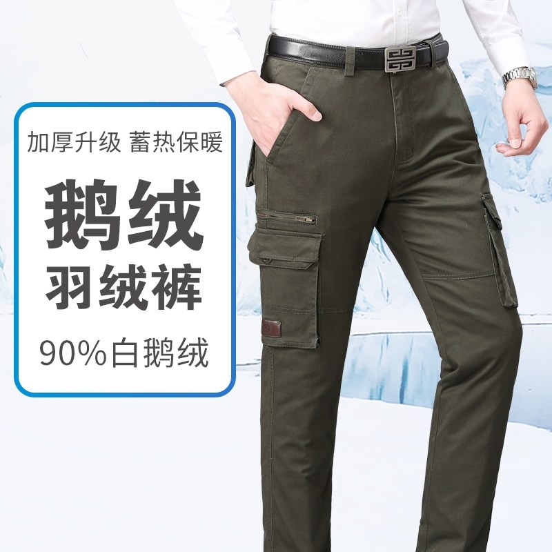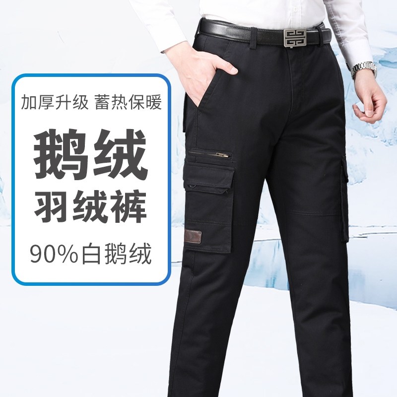 Down Pants Men Thickened Outwear Removable All-cotton High-end Winter Warm Pants White Goose Down High Waist Elastic Loose