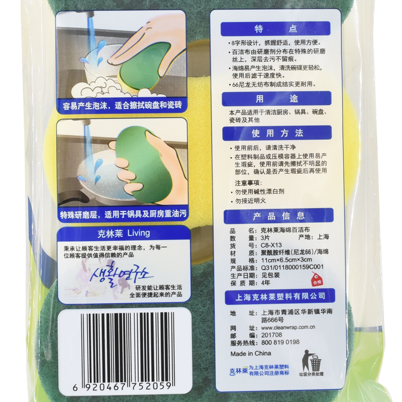 Klingle sponge Baise cleaning cloth kitchen Dishwashing Brush Pan Decontamination not stained with oil Clean rag overvalued clothing 3 blocks