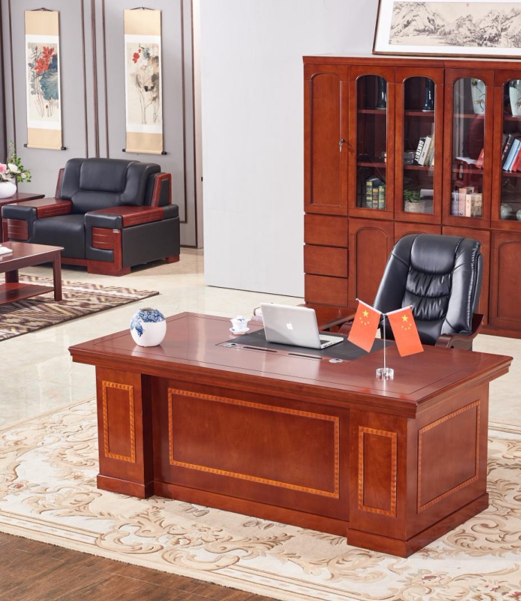 Office furniture big class desk boss table desk chair combination modern Chinese solid wood leather president table manager table