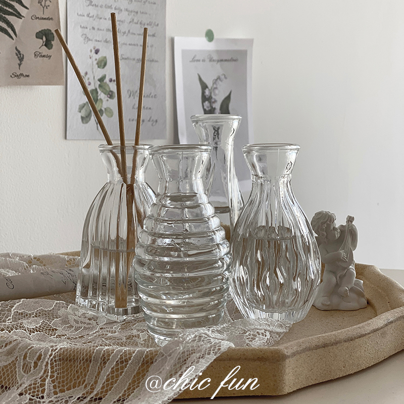 chic fun * Vintage transparent glass small vase living room flower arrangement hydroponic hydroponic net red dried flower ornaments ins wind