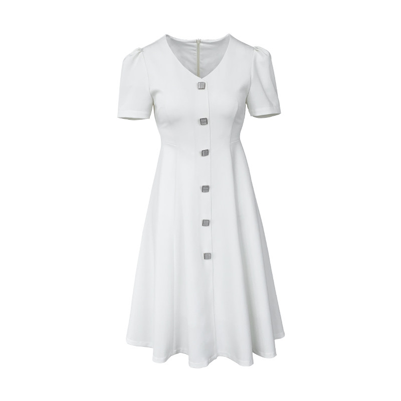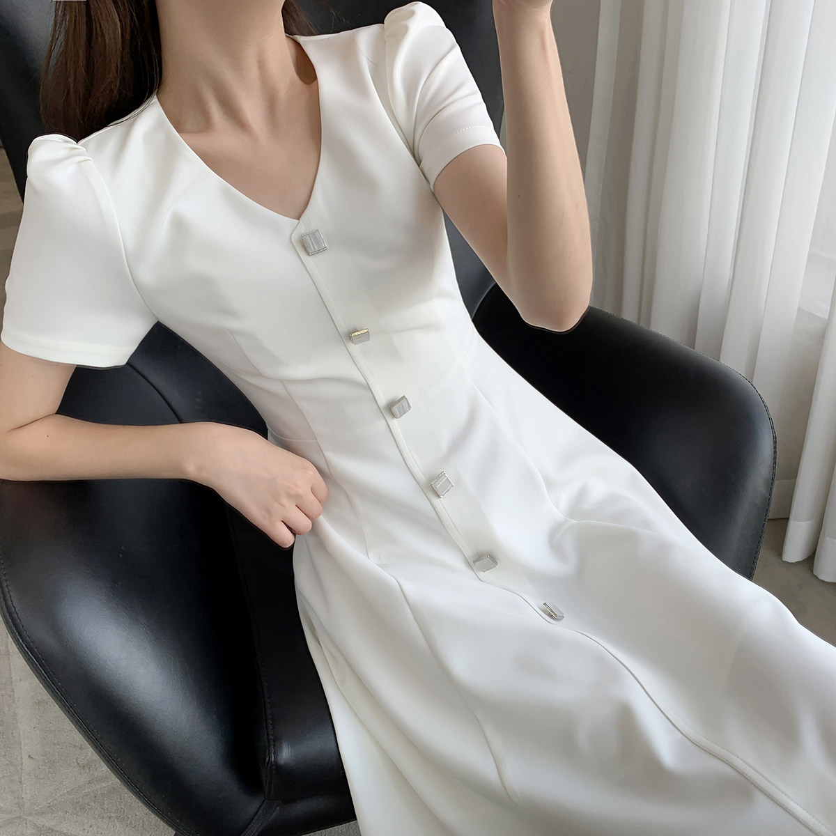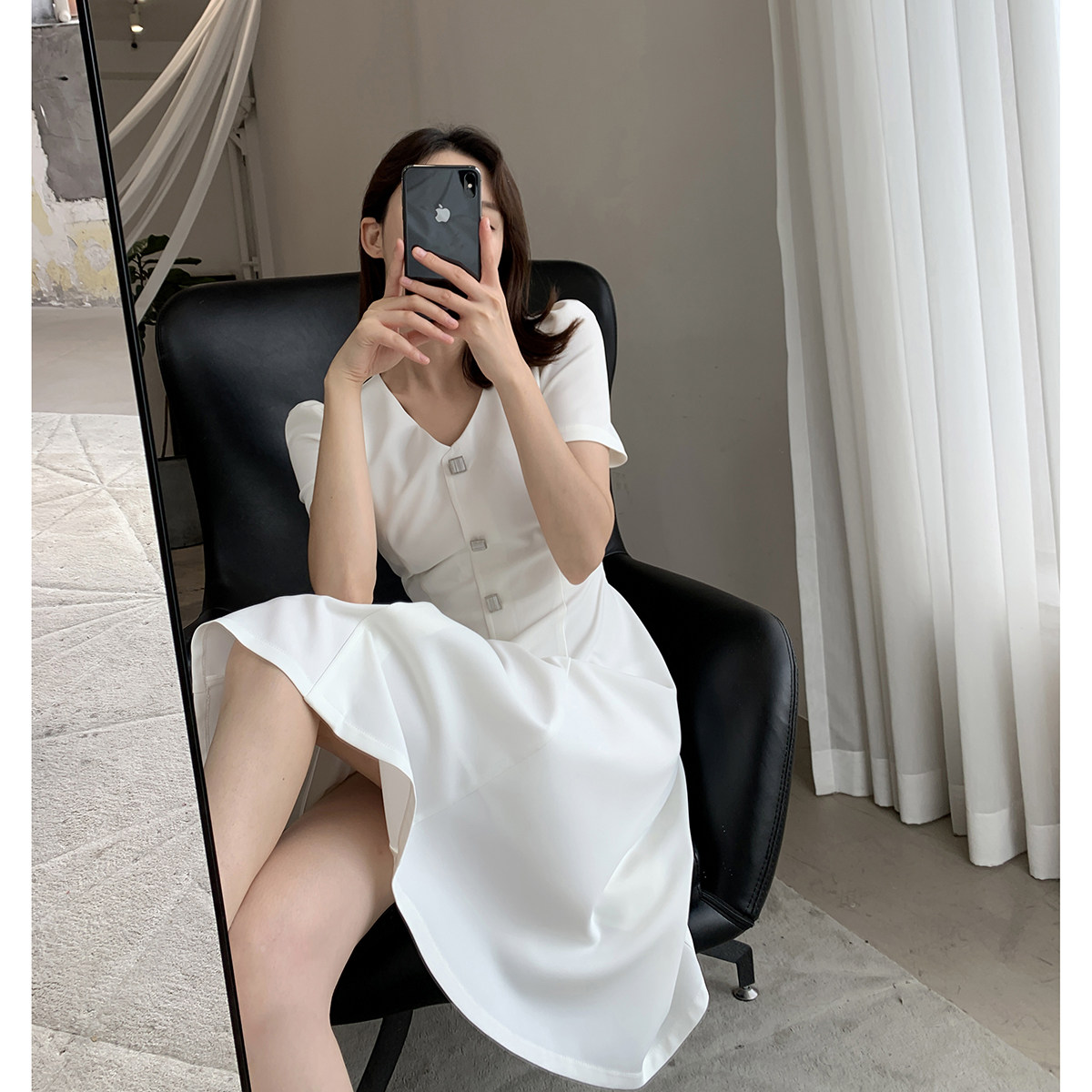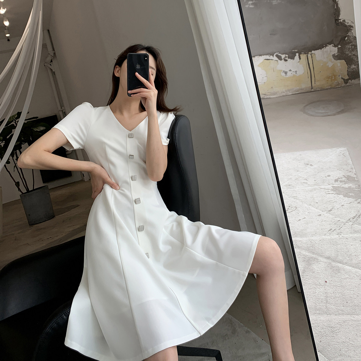 FT GUOGE white dress 2022 new summer dress single row with waist display slim fit goddess Fan Xiaowhite dress