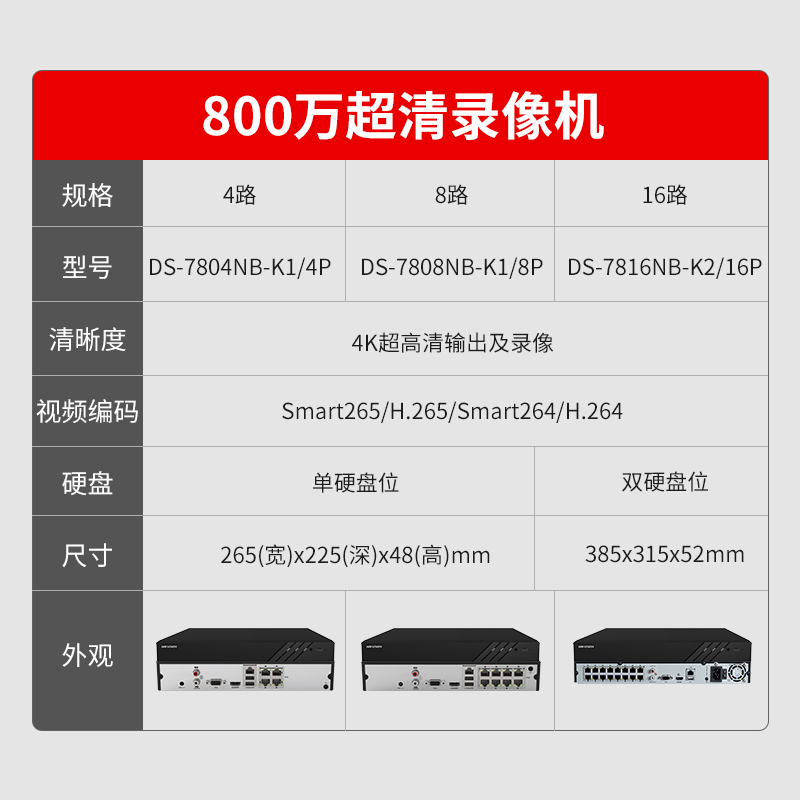 Hikvision poe Network Hard Disk recorder 4 8 16-way home nvr monitoring host 7804N-K1 4P