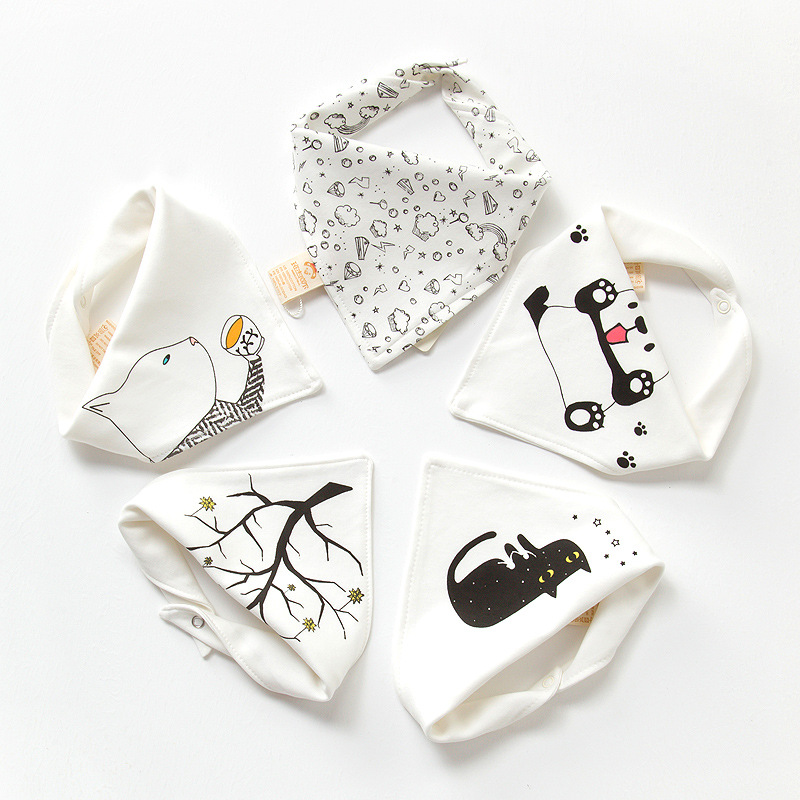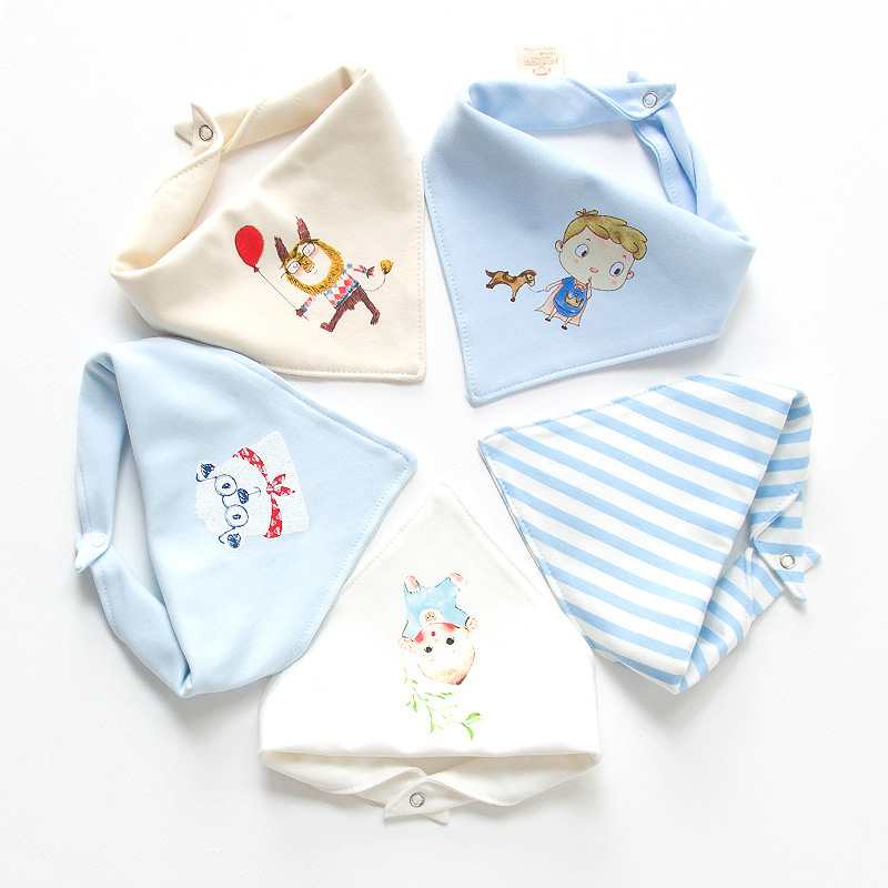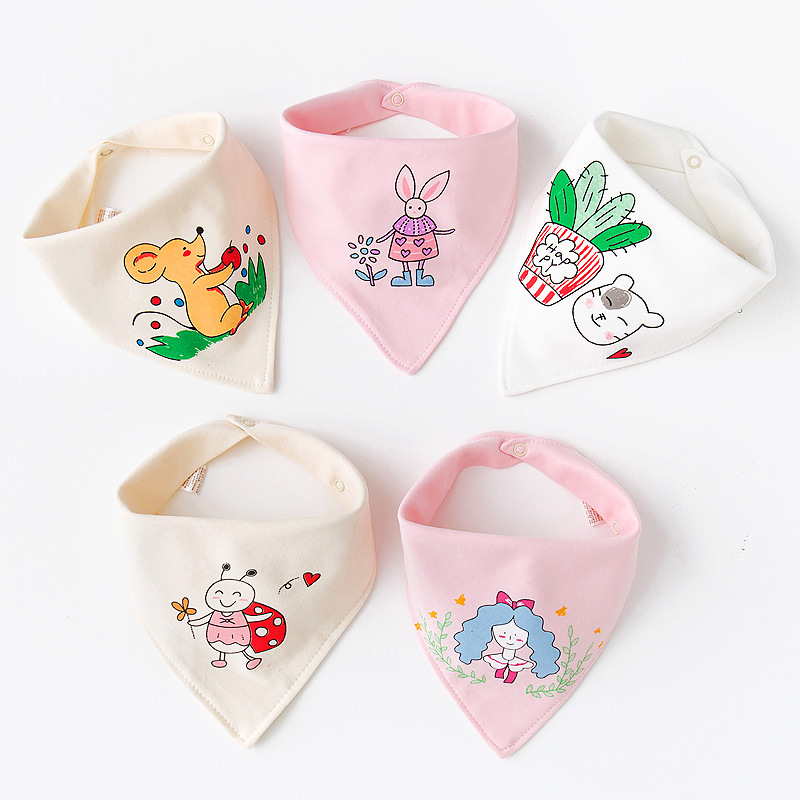 Baby Triangle Towel Pure Cotton Baby Enclosure Double press Buckle Cartoon Headscarf Bib Five Dress
