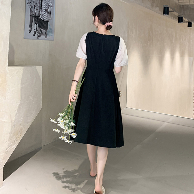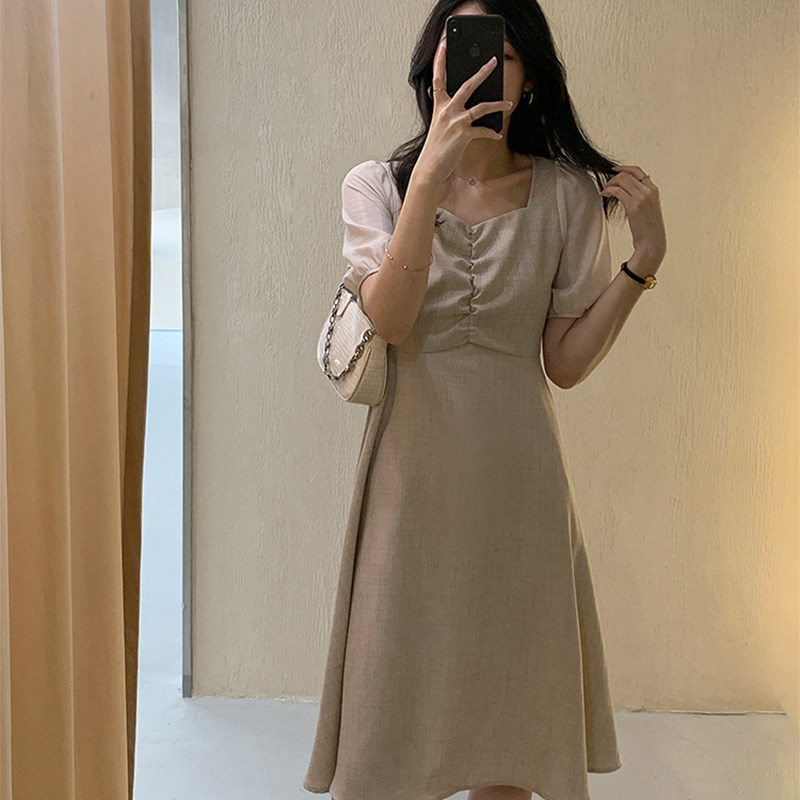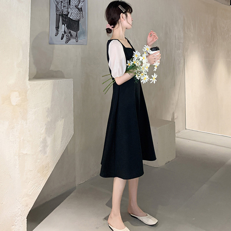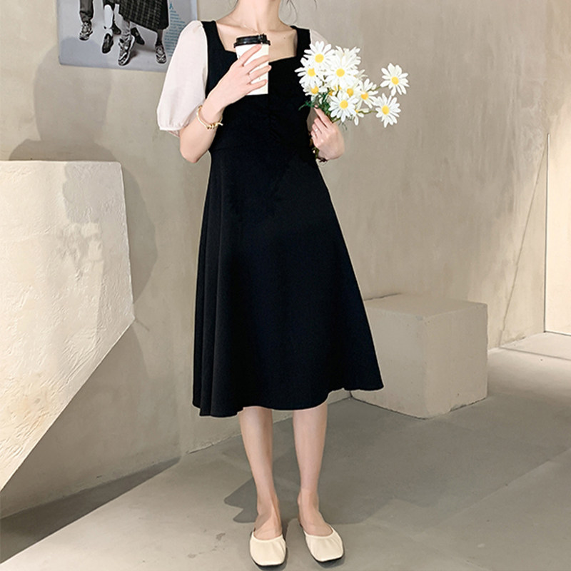2022 Summer clothes new lady gentle goddess Van Little black dress square collar long skirt French style small crowd of slim fit
