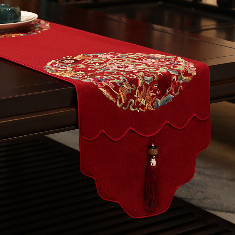 Chinese style table flag New Chinese tea table cloth tea flag Chinese wind cotton linen embroidered bed flag table cloth table cloth support custom-made-Taobao