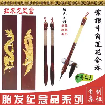 Lingyou Jiabao Tian Mao Zhang Tian Mao Mao Po lotus flower bucket Beaded red sandalwood horns standing carved dragon or phoenix pen price