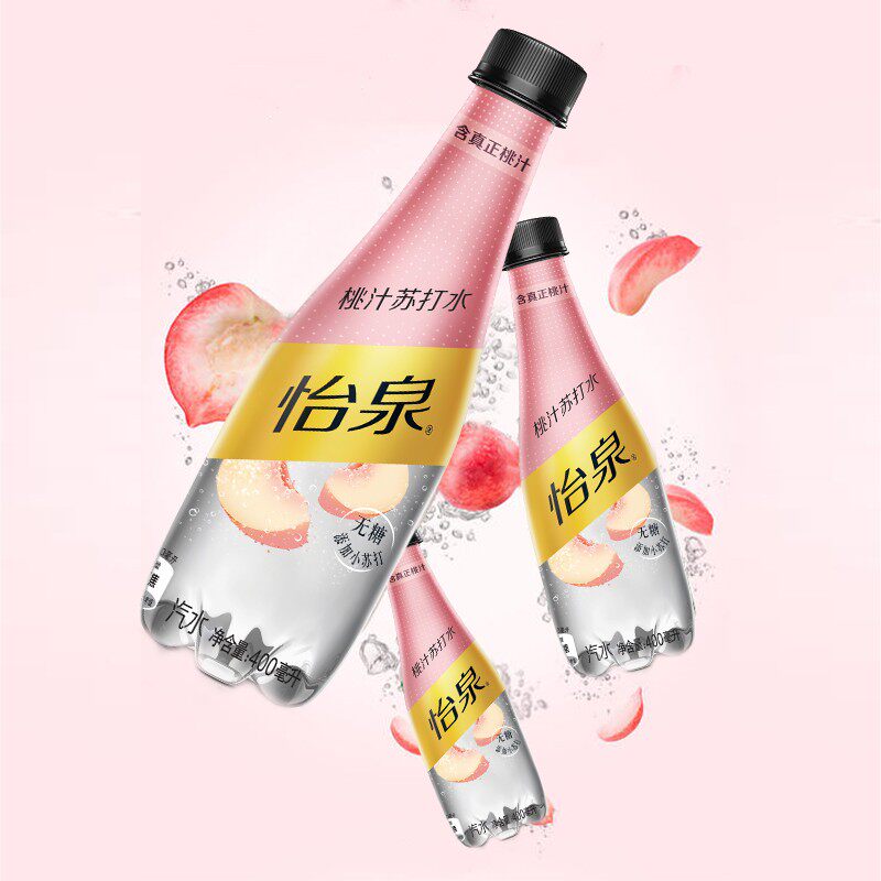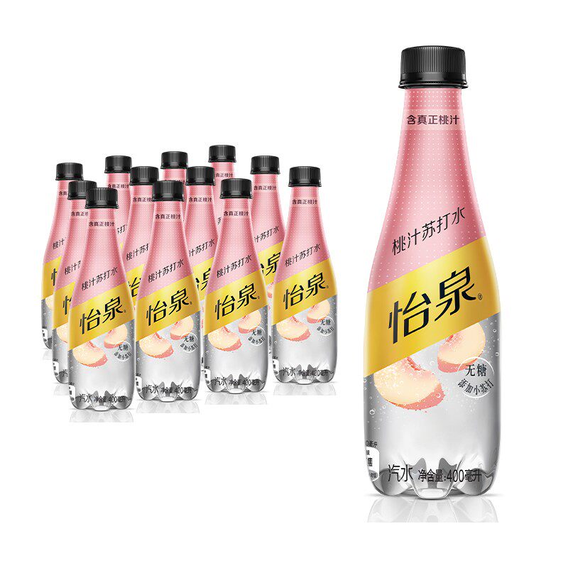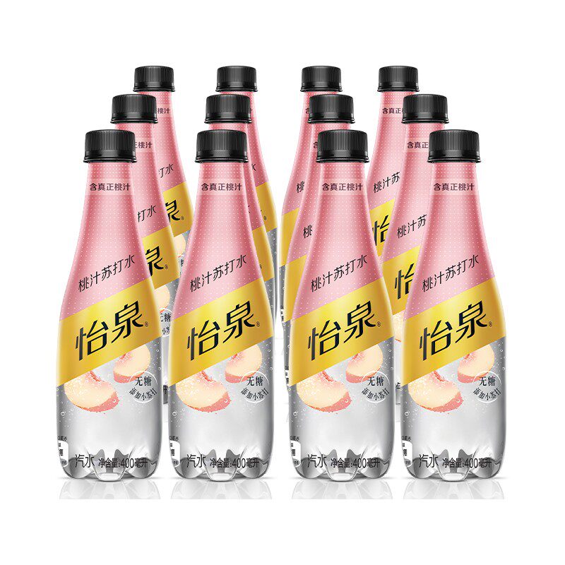 Coca Cola Yiquan peach juice soda 400ml * 12 bottles of sugar-free bubble water containing peach juice 0 sugar 0 calories 0 fat