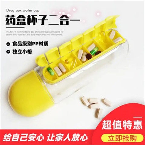 The water cup with pill box is divided into convenient compartments, and the seven-day pill cup storage is specially divided into pill boxes