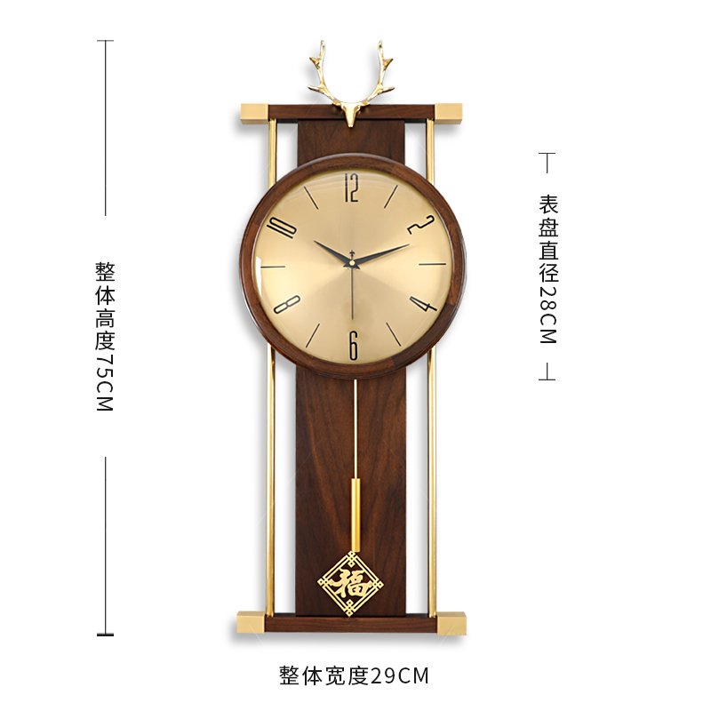 New Chinese style light luxury deer head wall clock atmospheric Chinese style living room household pure copper solid wood clock watch fashion hanging watch