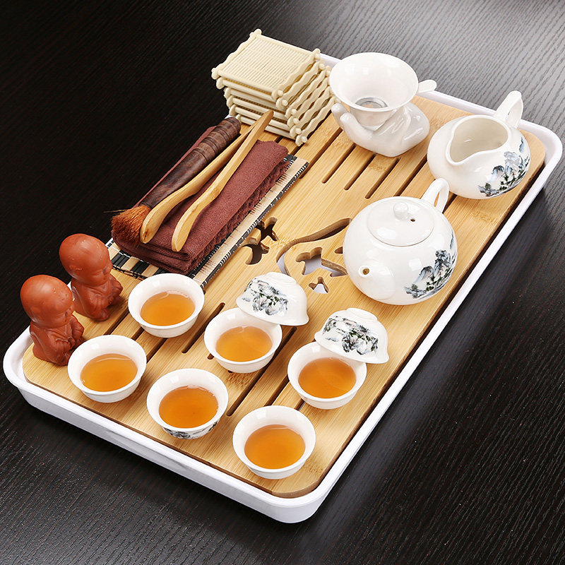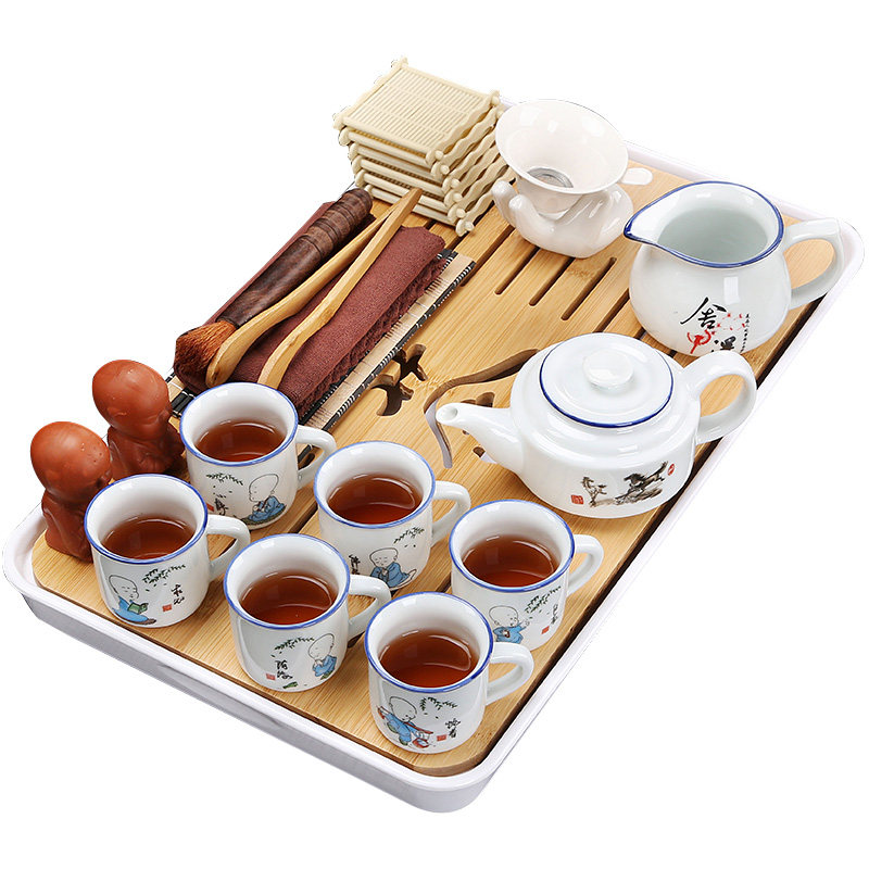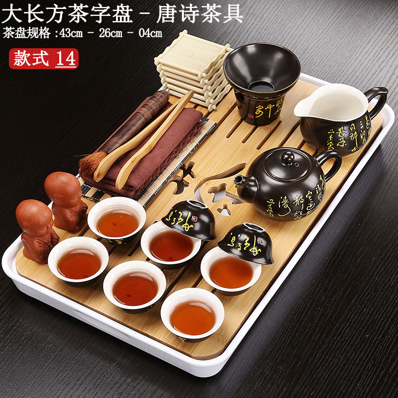 Glass tea set set household small set simple modern living room balcony reception Kung Fu tea cup tea table pan sea complete set
