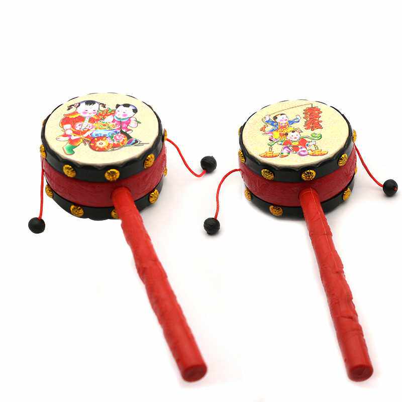 Plastic Auspicious Dial Wave Drum Cartoon Baby Wave Drum Rattle Bell Paper Leather Drum Traditional Dial Wave Baby Toy Shake Bell