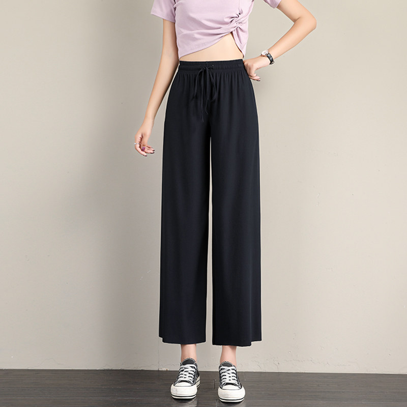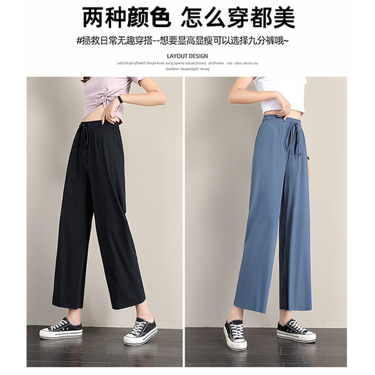 Ice Silk Broadlegged Pants Hostess High Waist Loose Display Slim Straight Drum Sporting Pants Slim for casual summer 90% small