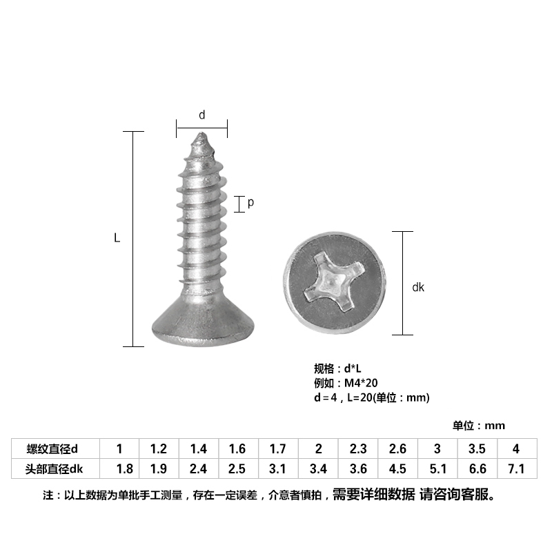 Iron nickel-plated screw flat head cross countersunk head self-tapping screw M3M3 5*7x8x10x12x14x16x20-40