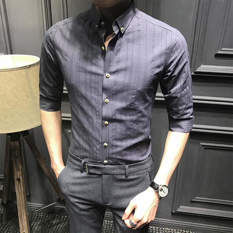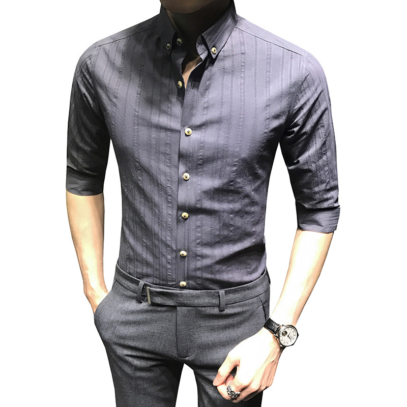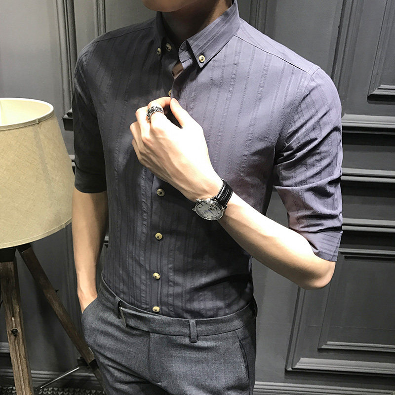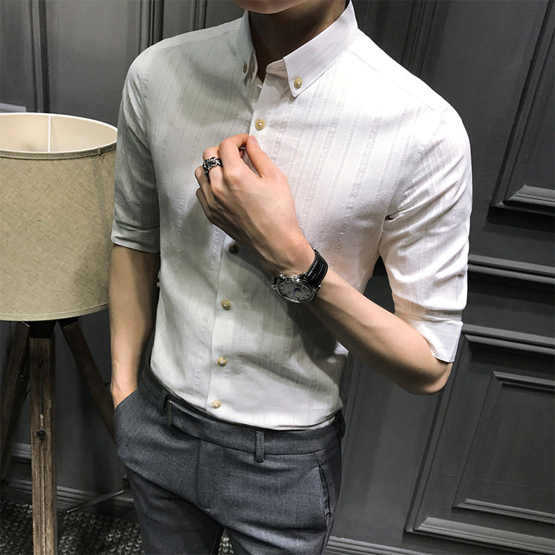 Rich bird summer slim short-sleeved shirt Korean version of the sleeve casual seven-point sleeve trend men's five-point sleeve shirt