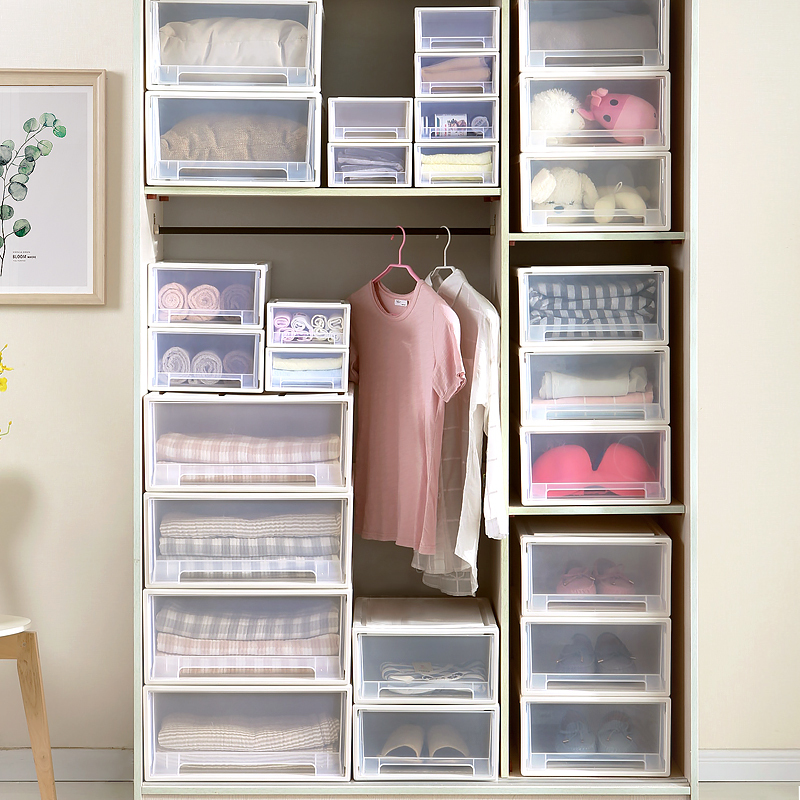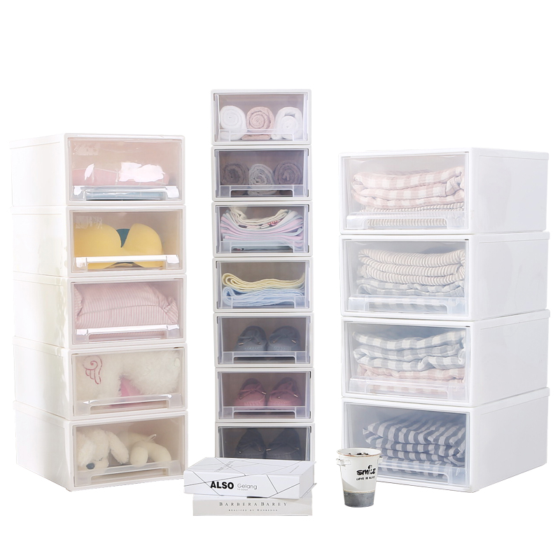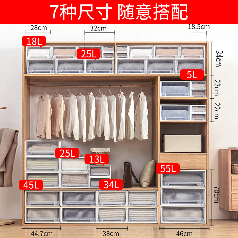 Drawer storage box Plastic thickened transparent storage cabinet Household clothes finishing box artifact wardrobe storage box