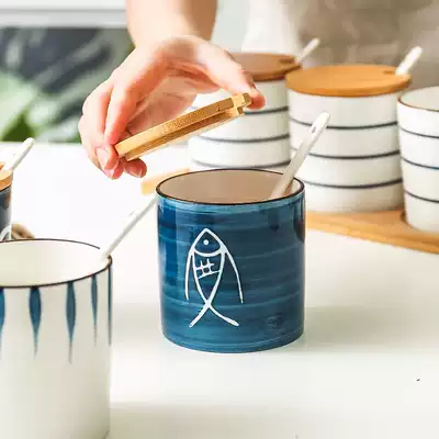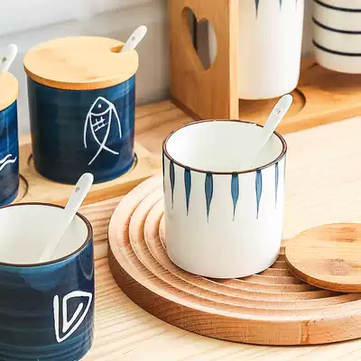 Yuntao Japanese ceramic seasoning box household salt monosodium glutamate sugar seasoning jar set kitchen storage box salt jar three-piece set