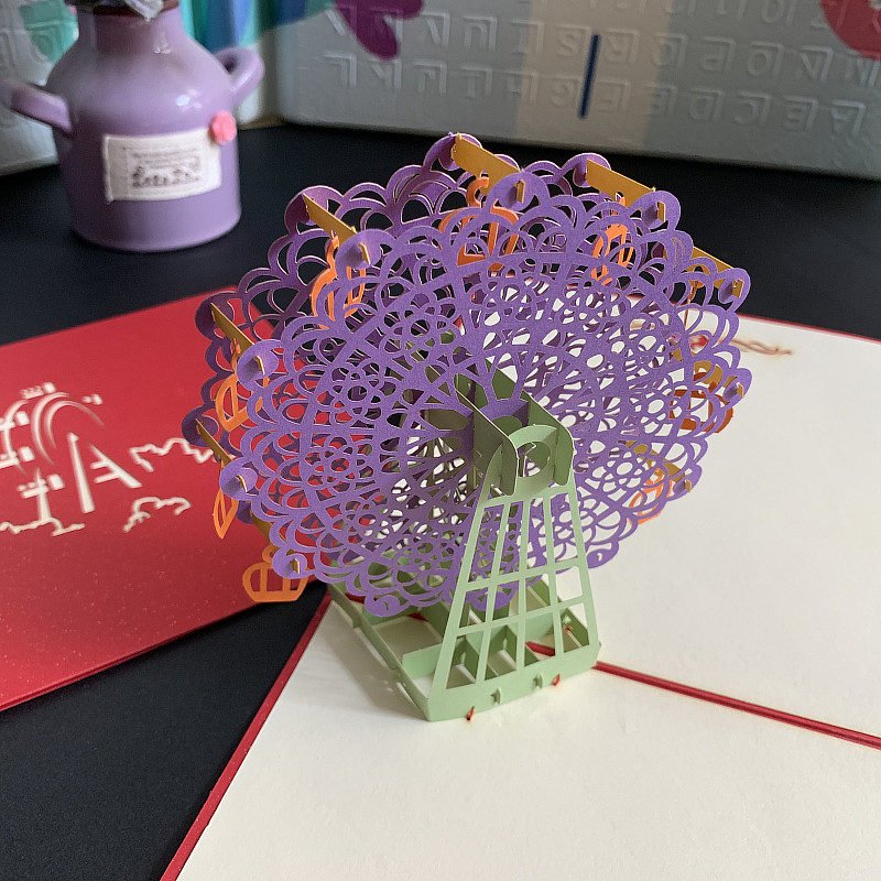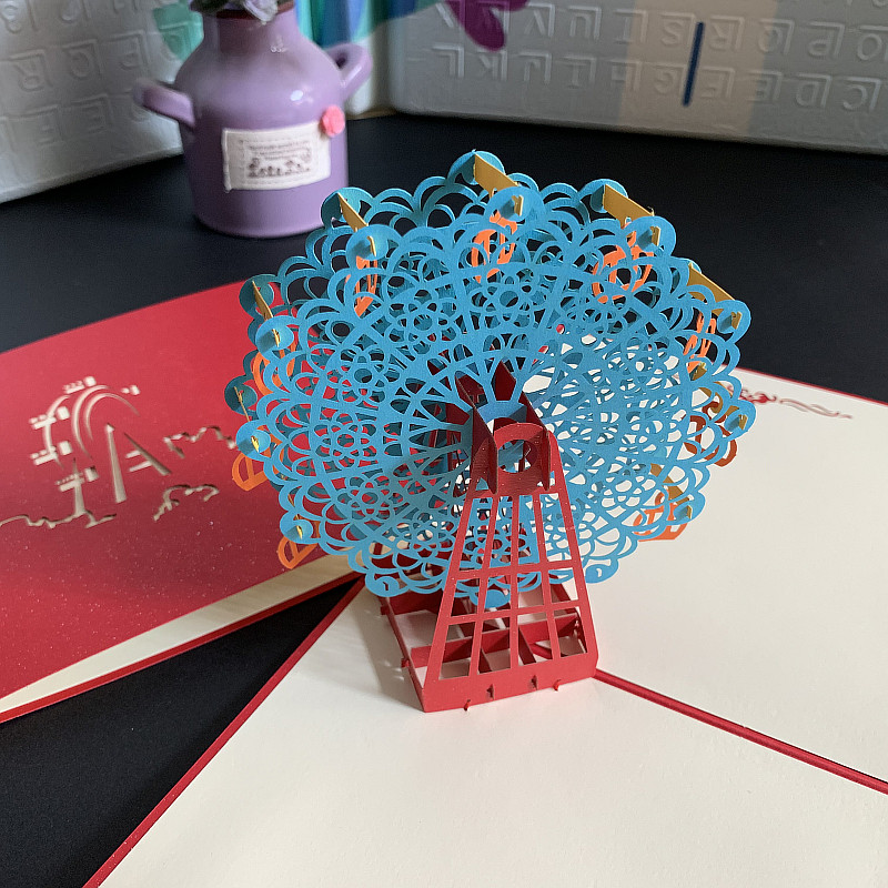 3D Solid Paper Engraving Paper cut paper Cards Creative Mootian Wheels Handmade DIY Birthday Blessings Thanks To Grateful Gift Cards-Taobao