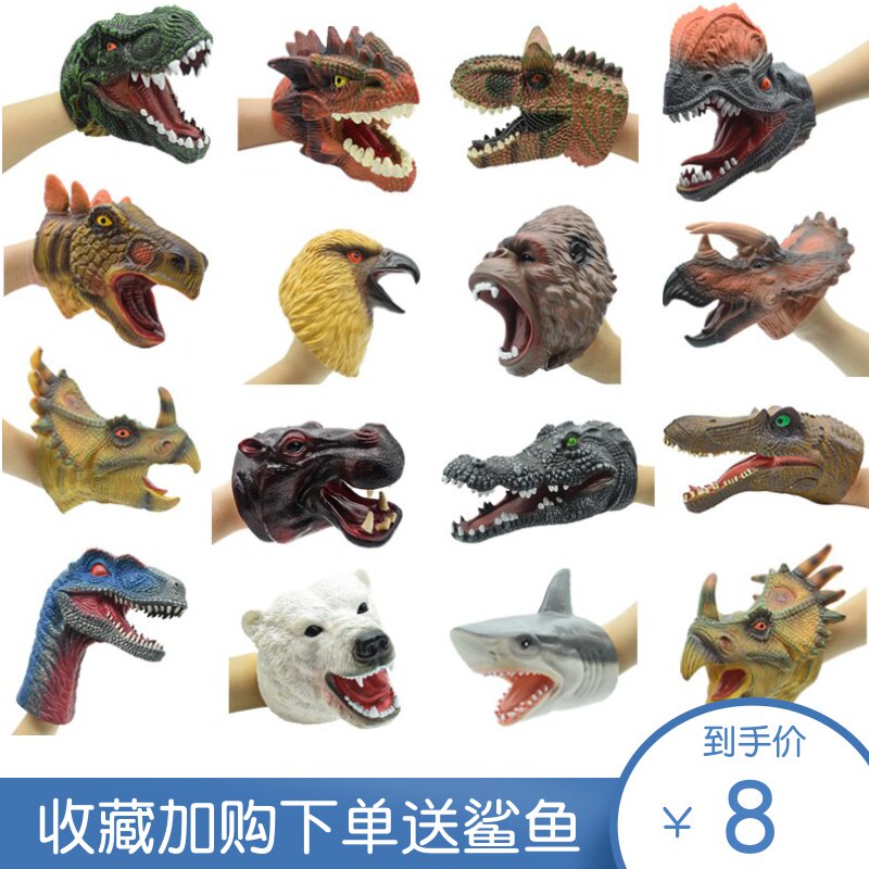 Parent-child interaction shark dinosaur glove hand puppet toy simulation soft rubber animal shark arm gloves can open mouth dinosaur head