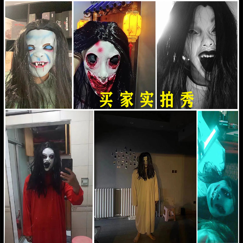 Horror female ghost mask haunted house secret room escape npc Sadako script kill scary person disguised as ghost headgear Halloween props
