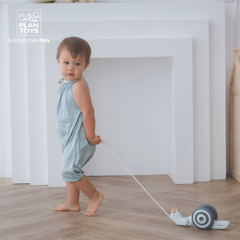 PlanToys original imported drag snail color animal infant toddler toddler baby wooden learning to crawl toys