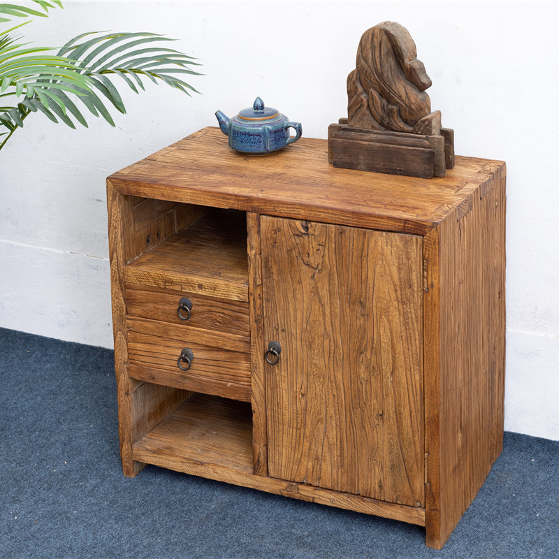 Old elm old door panel tea cabinet low cabinet simple new Chinese style office rest area tea room tea table cabinet