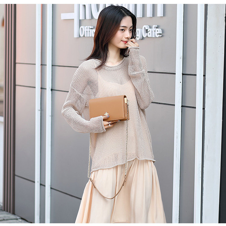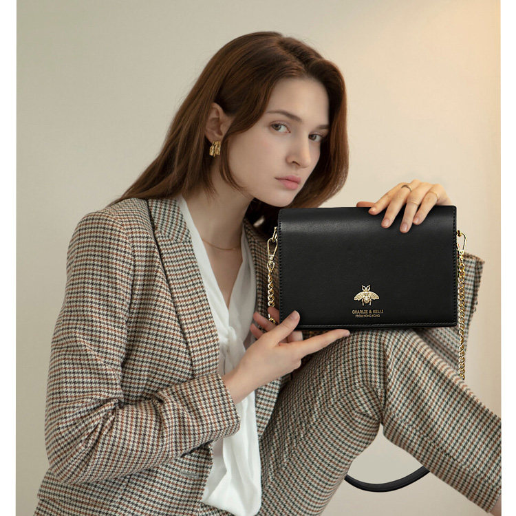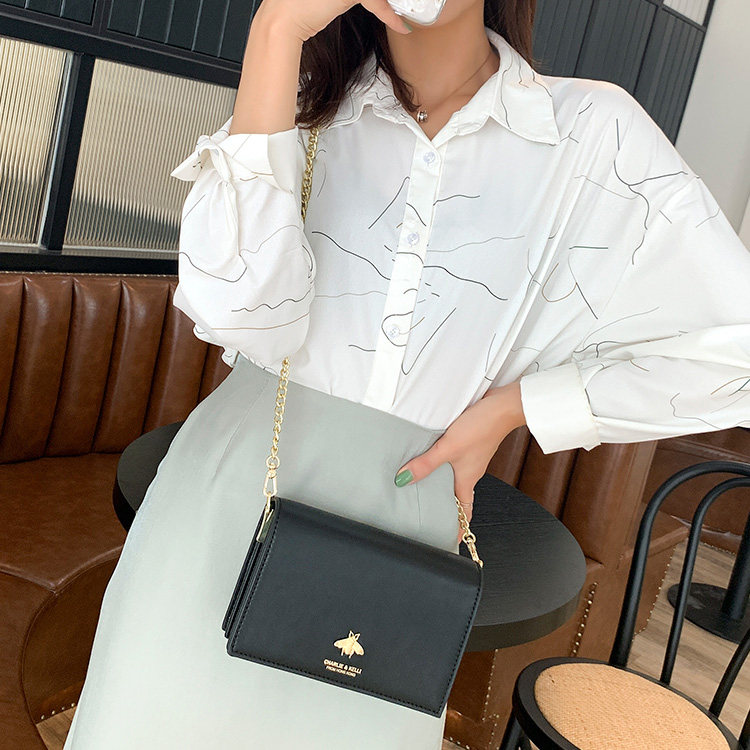 Advanced senses package Women Summer 2021 new fashion 100 lap chain small square bag genuine leather bee bag single shoulder inclined satchel bag