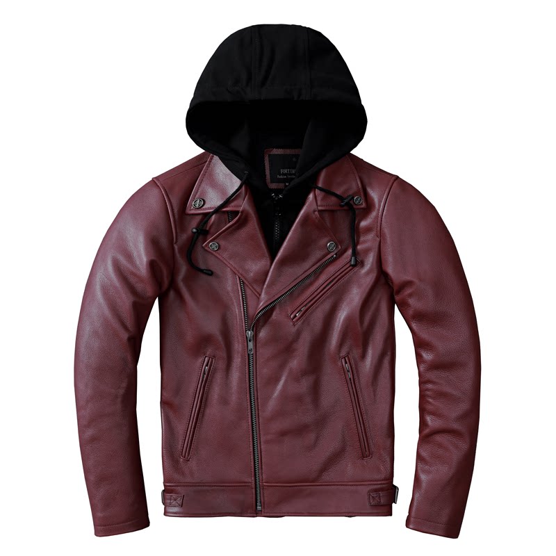 Harley motorcycle clothing first layer cowhide leather leather jacket men's slim lapel motorcycle clothing removable hooded jacket