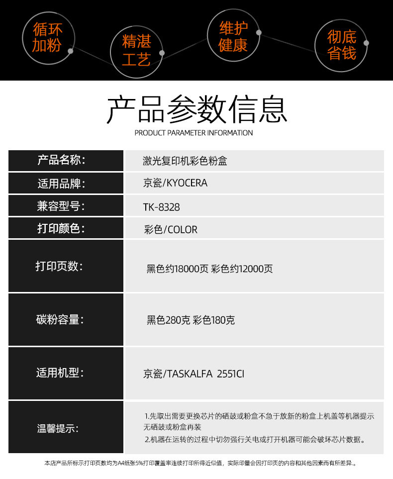 Color Inprint Beauty Applicable Kyocera Kyocera TAKalfa 2551ci Color toner cartridges 2551ci photocopier cartridges TK-8328 Carbon powder TK83