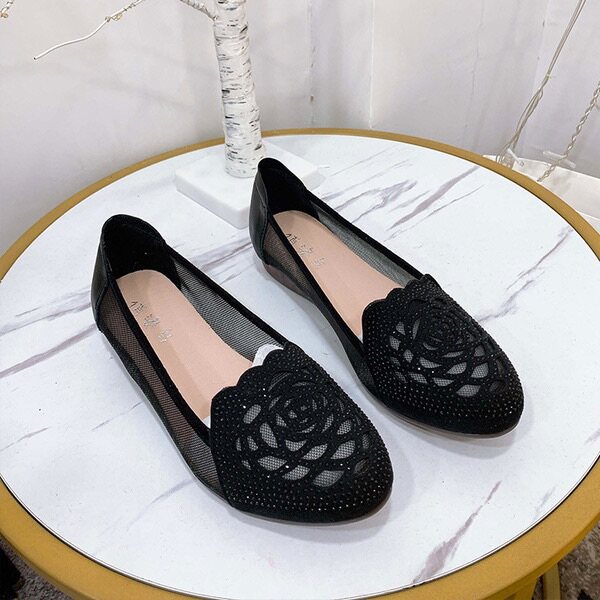 Wenzhou Straight Hair Pretty Bird Leather Elegant Hollow Rhinestone Mother Shoes D9 First Layer Cowhide Beef Tendon Jelly Bottom