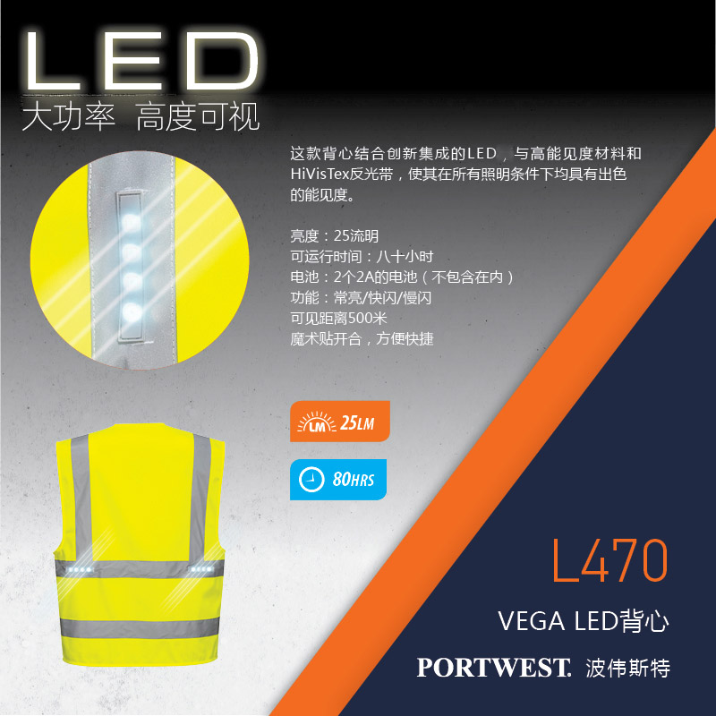 Portwest height visual protection workers high power with LED vest high reflective vest breathable safety clothing M