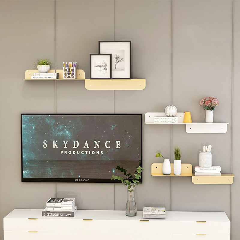 Nordic wall shelf free punching iron living room TV wall decoration bedroom wall bookshelf word partition