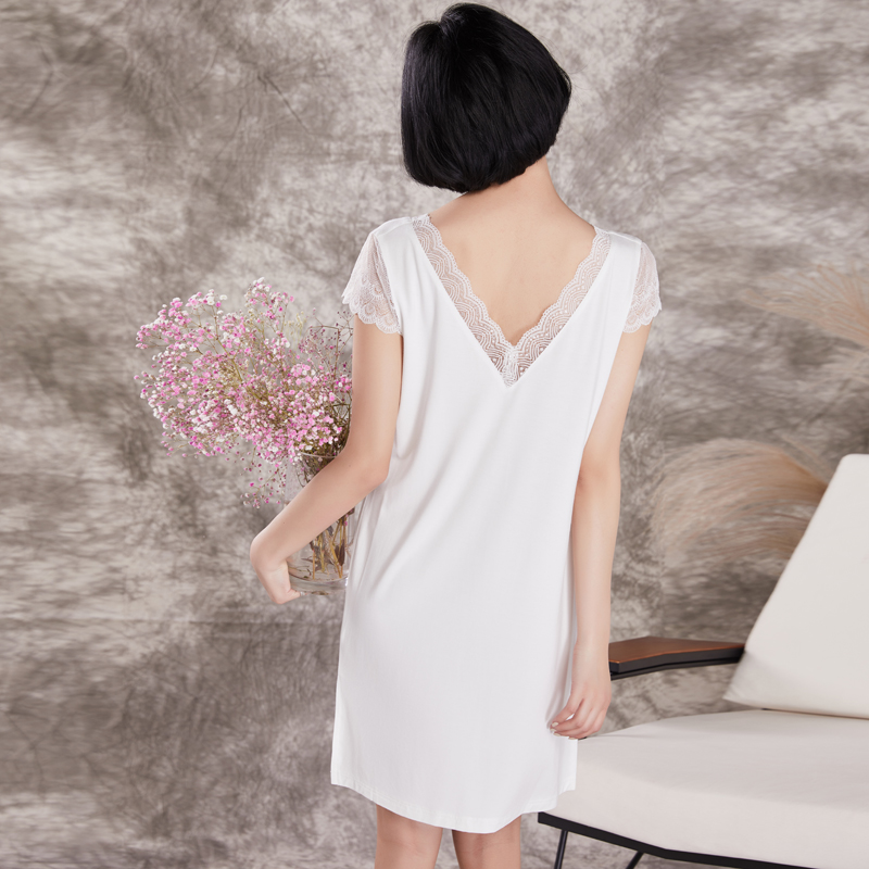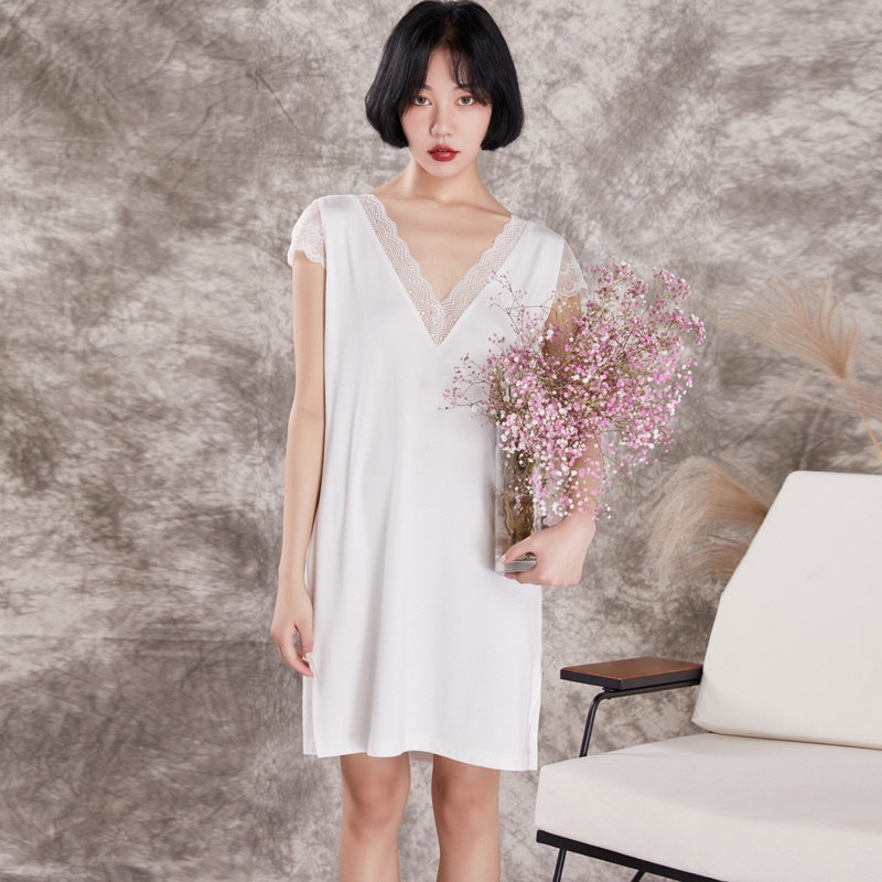 Nightdress women's summer modal thin short-sleeved sexy white 2022 new cotton home service ice silk pajamas