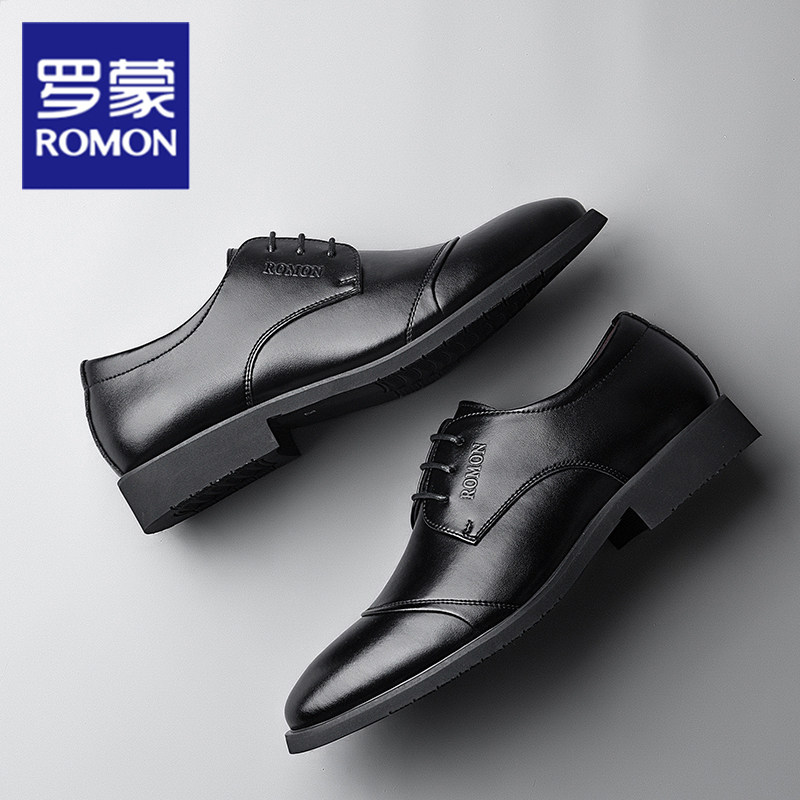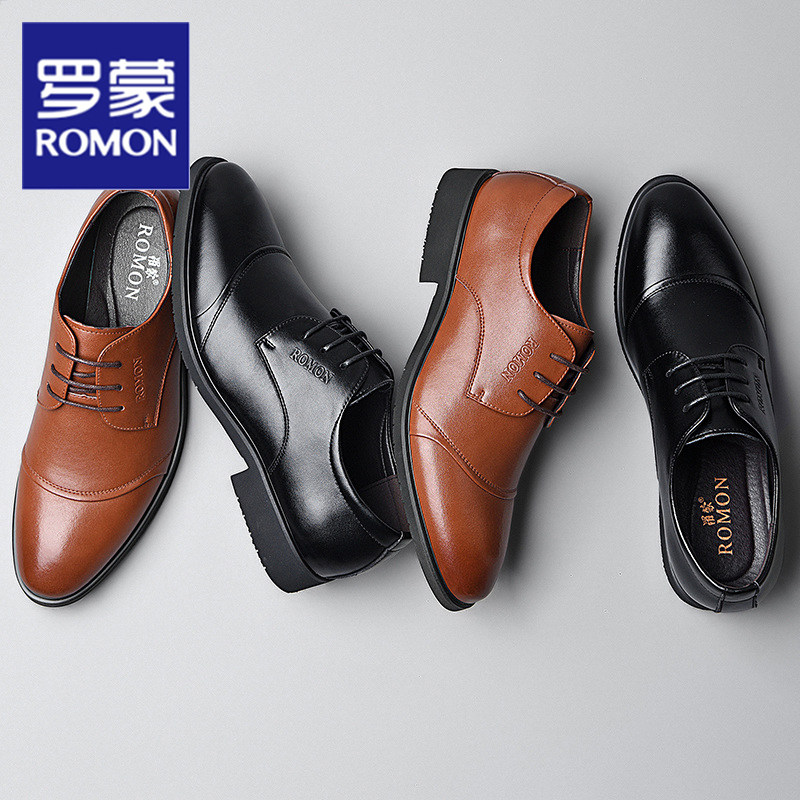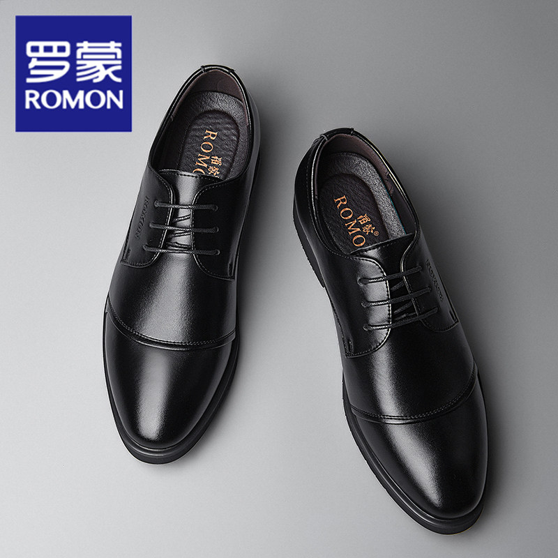 Romon spring new leather shoes business dress shoes British casual leather shoes men's soft sole wear-resistant men's shoes