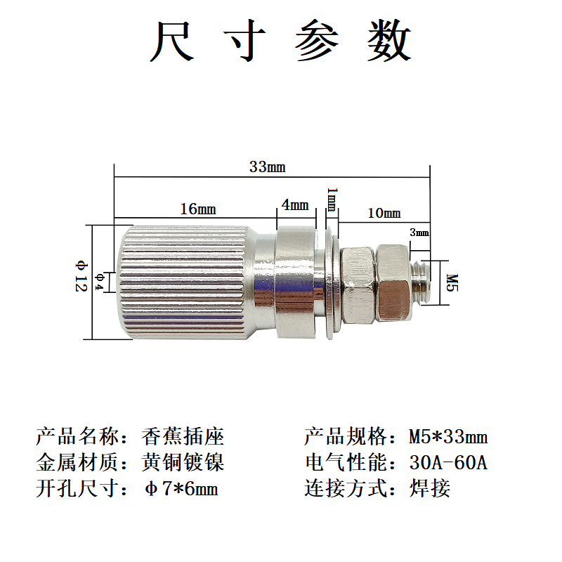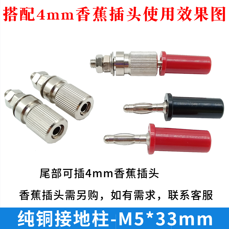 Full copper M5 * 33mm ground column speaker terminal power amplifier output test column metal banana socket 4mm