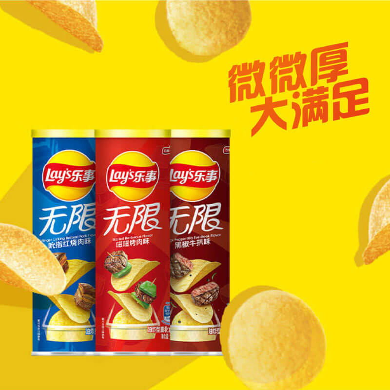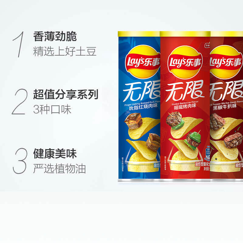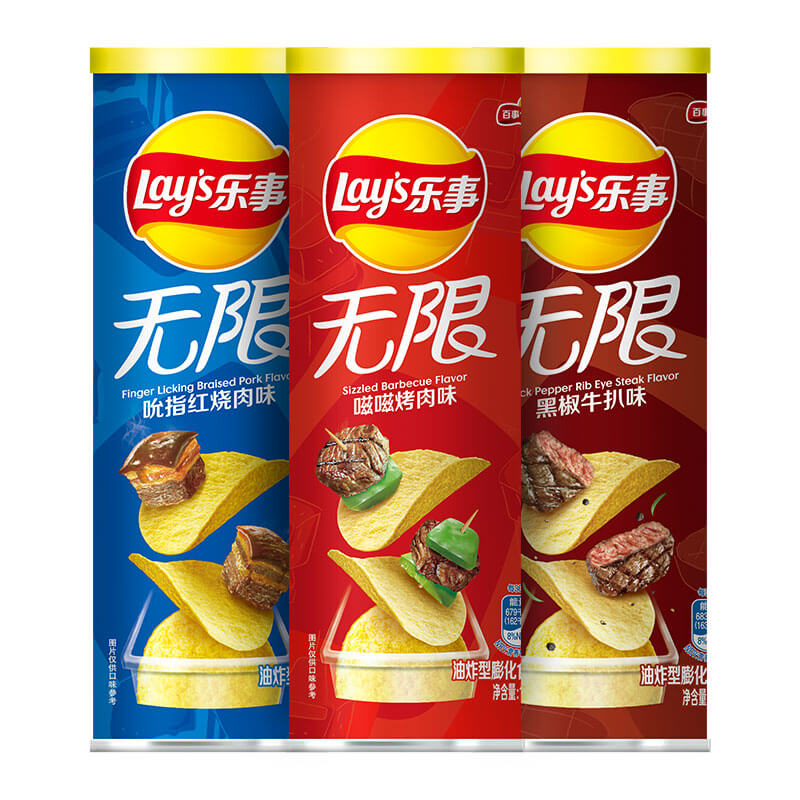 Lay's Unlimited Three-pot Potato Chips Meatless (Barbecue, Braised Pork, Steak) 104g x 3 can