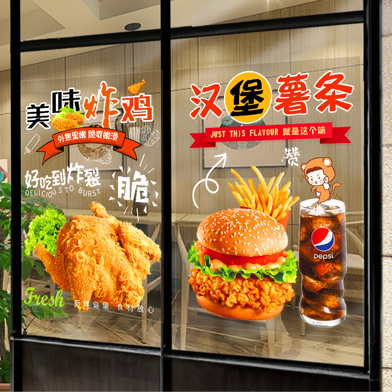 Fried Chicken Burger Shop Glass Door Sticker Creative Milk Tea Burger Shop Wall Decoration Shop Window Advertising Poster Wall Sticker